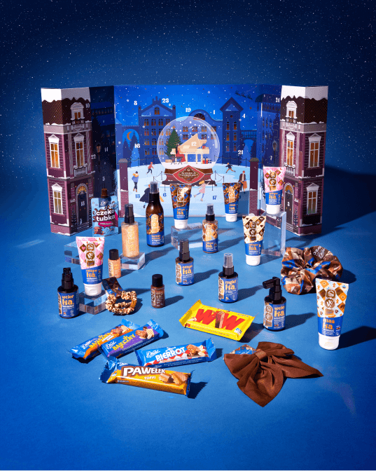Kalendarz adwentowy Onlybio x E.Wedel to podróż do niezwykłej świątecznej krainy, w której Twoje kosmetyki pachną jak wedlowskie, czekoladowe słodkości, a świat wokół na dłuższą chwilę wydaje się po prostu lepszy!